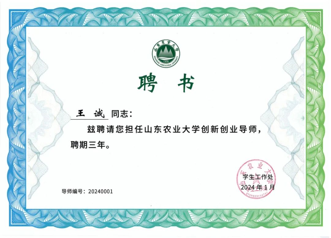 董事長王誠被聘為山東農(nóng)業(yè)大學(xué)創(chuàng)新創(chuàng)業(yè)導(dǎo)師