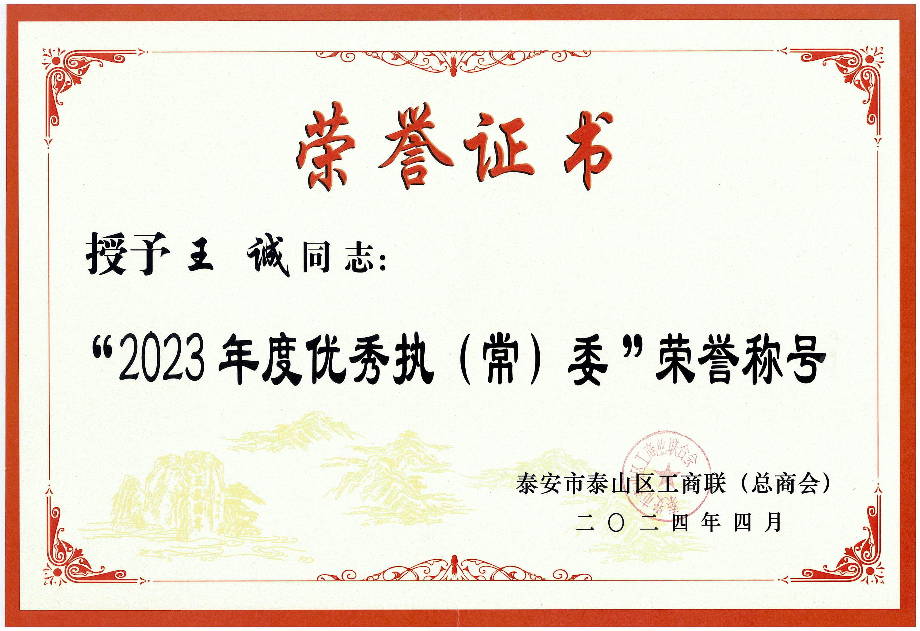 董事長(zhǎng)王誠(chéng)榮獲泰山區(qū)工商聯(lián)“2023年度優(yōu)秀執(zhí)(常)委”榮譽(yù)稱號(hào)
