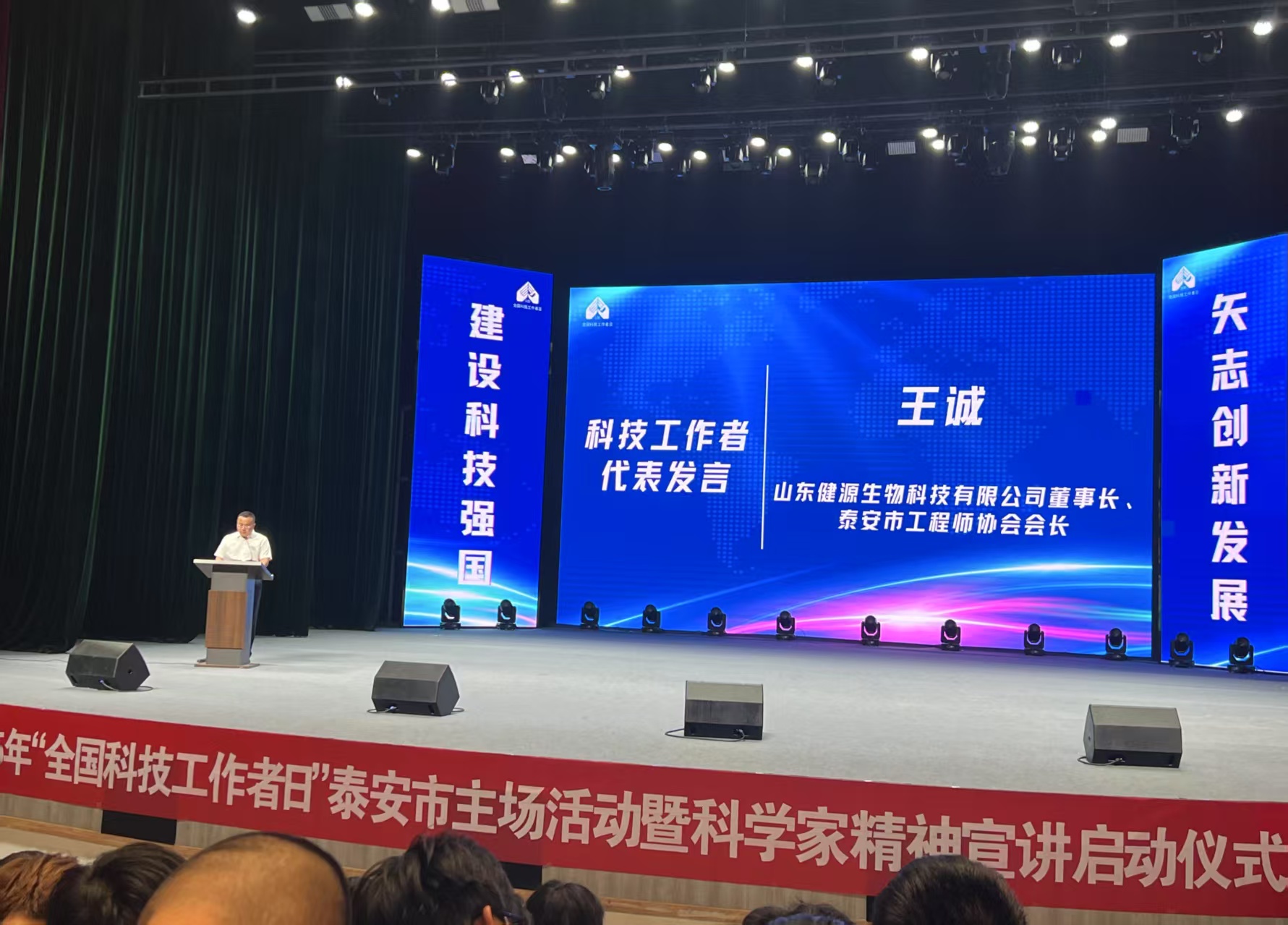 發(fā)布時間:[2025-6-2 15:3:40] 瀏覽量:1542次5 月 28 日上午,2025年 “全國科技工作者日” 泰安市主場活動暨科學(xué)家精神宣講啟動儀式在泰山科技學(xué)院隆重舉行。山東健源生物科技有限公司董事長、泰安市工程師協(xié)會會長王誠作為科技工作者代表出席并發(fā)言,與400余名科技工作者代表、高校師生齊聚一堂,共慶節(jié)日并凝聚科技創(chuàng)新共識。